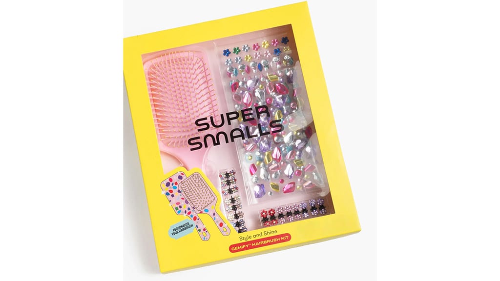 Osveži svoje bleščeče sposobnosti s to DIY krtačo za lase! Okrašuj krtačo s tremi listi bleščečih nalepk draguljev. Za popoln videz lahko otroci pripnejo tudi tri sponke za lase v obliki cvetov s kristalčki. Ta ustvarjalna dejavnost ni le zabavna, ampak razvija tudi ročne spretnosti in individualni stil. Končni rezultat je resnično edinstvena in bleščeča krtača za lase, ki bo vsak dan prinašala veselje!
