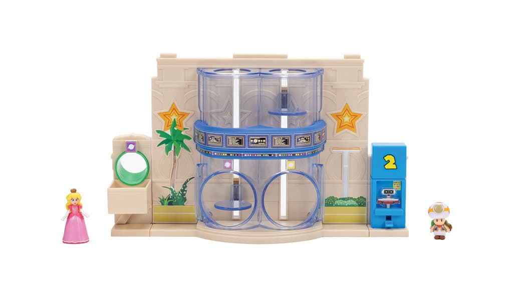 Podaj se v nove, vznemirljive dogodivščine Super Mario s tem igralnim kompletom! S pomočjo dvigal na zadnji strani lahko princesa Peach in kapitan Toad potujeta gor in dol po prozornih cevnih tunelih. Komplet vsebuje tudi čarobni cevni tobogan in ploščo z R.O.B.-om, zato je ta set popoln vstop v medgalaktični igralni čas. Odkrij različne proge in doživi čarobne trenutke sveta Super Mario s prijatelji ali sam!