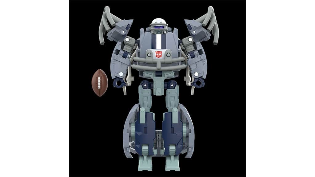 To je del kolekcije Transformers x NFL Dallas Cowboys. Lahko se preoblikuje iz ameriške nogometne čelade v robota. Ta posebna igrača nem le za ljubitelje športa in Transformersov, temveč za vse, ki imajo radi edinstvene, preoblikovalne figure. Zaradi podrobne izdelave in kreativnega dizajna je odlično darilo tako za otroke kot za zbiratelje.