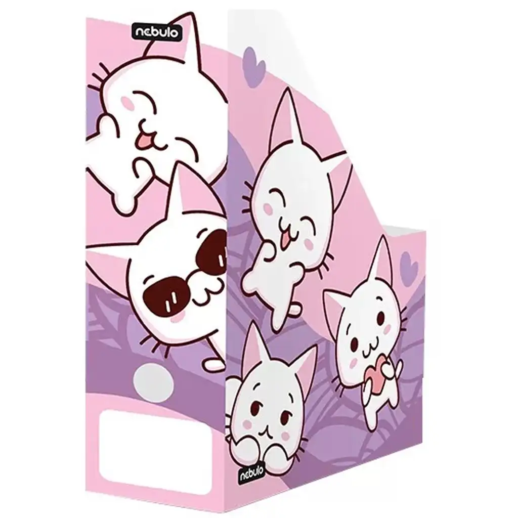 Nebulo kartonski nosilec za dokumente – Muca ni le praktičen organizator za zvezke, risalne liste in dokumente, ampak tudi res prikupen in vesel dodatek otroški sobi ali šolski polici. Prijazna, nasmejana mačja grafika izžareva veselo vzdušje, zato bo zagotovo postala najljubša otrokom, medtem ko pomaga ohranjati red med papirji, ki jih potrebujejo za učenje.
