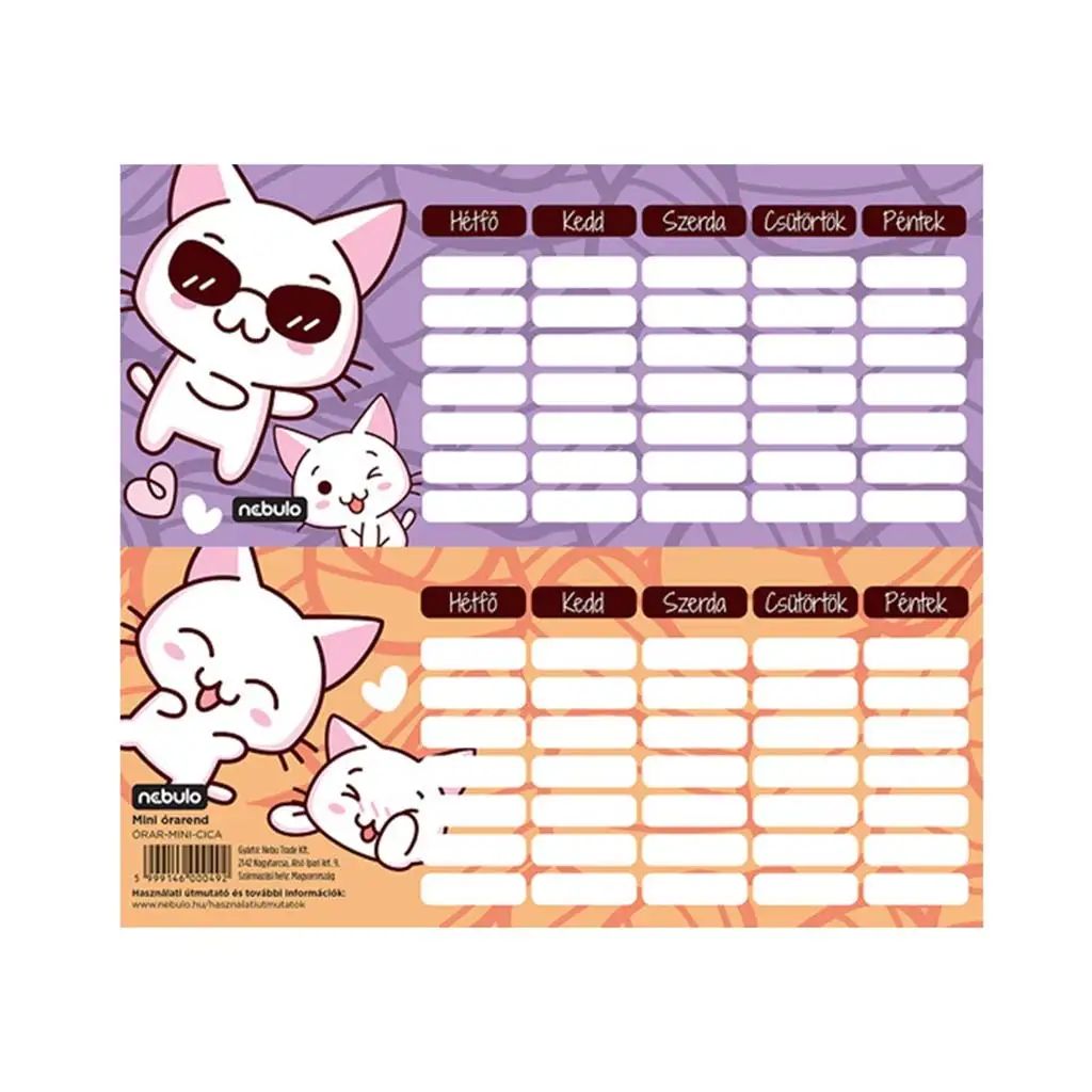 Nebulo: Mačji enostranski, dvostranski mini urnikNebulo: Mačji enostranski, dvostranski mini urnik