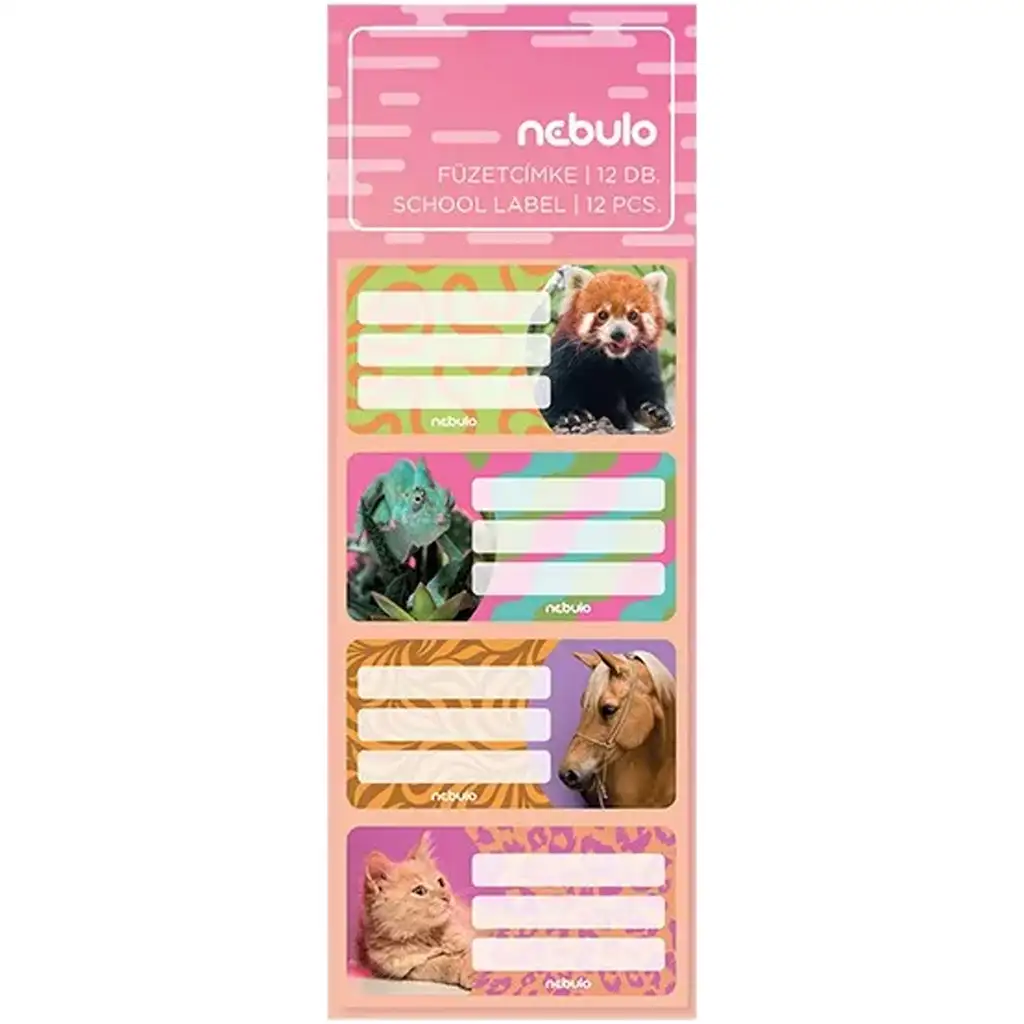 Nebulo prikupni komplet nalepk za zvezke z motivi živali zagotovo popestri vsakdan v šoli! Paket z 12 nalepkami prikazuje različne ljubke živali – kot so rdeča panda, kameleon, konjiček ali mucek – tako da bo vsak otrok našel svojega najljubšega. Nalepke niso le vesele, temveč tudi praktične: dobro se držijo, enostavno se po njih piše in so trpežne. Z njihovo pomočjo se zvezki, učbeniki ali mape zlahka organizirajo, živalski navdušenci med otroki pa bodo svoje ljubljenčke čutili še bližje sebi.