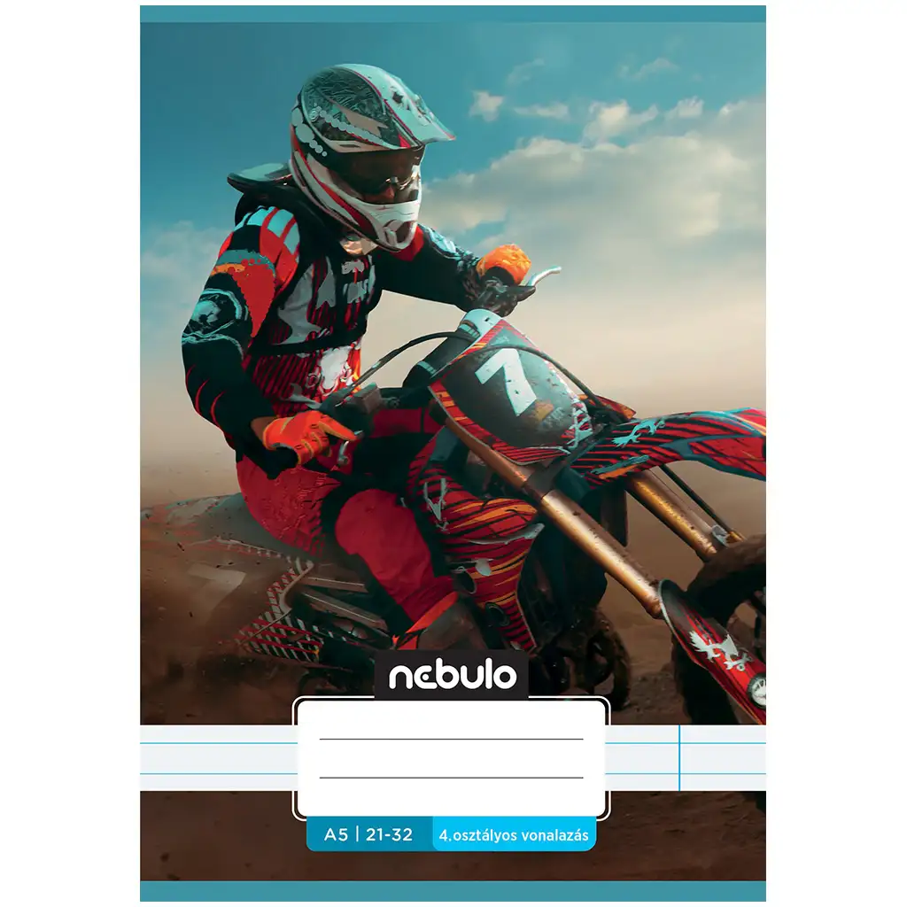 Če je tvoj otrok navdušen nad hitrostjo, motorji in vznemirljivimi izzivi, bo ta zvezek Nebulo z motivom dirkalnega motorista popolna izbira zanj! Na naslovnici je osupljiva grafika, kjer motorist v popolni opremi divja čez peščeni teren, pri tem pa za sabo vrtinči prah. Prizor je energičen, motivirajoč in dinamičen – prav tak, kot je lahko učni tempo četrtošolcev!