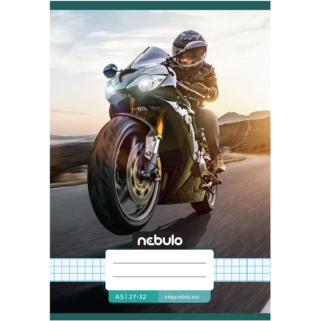 Če je tvoj otrok navdušen nad motorji, s tem karirastim zvezkom Nebulo zagotovo ne boš zgrešil! Na naslovnici je prikazan atraktiven prizor s tekmovalnim motoristom, ki izraža energijo, hitrost in adrenalin – točno to, kar je potrebno za dinamičen šolski dan. Vznemirljiv dizajn ni le privlačen, ampak je lahko tudi navdihujoč, saj pomaga motivirati otroke, da z veseljem vzamejo v roke svoj zvezek.