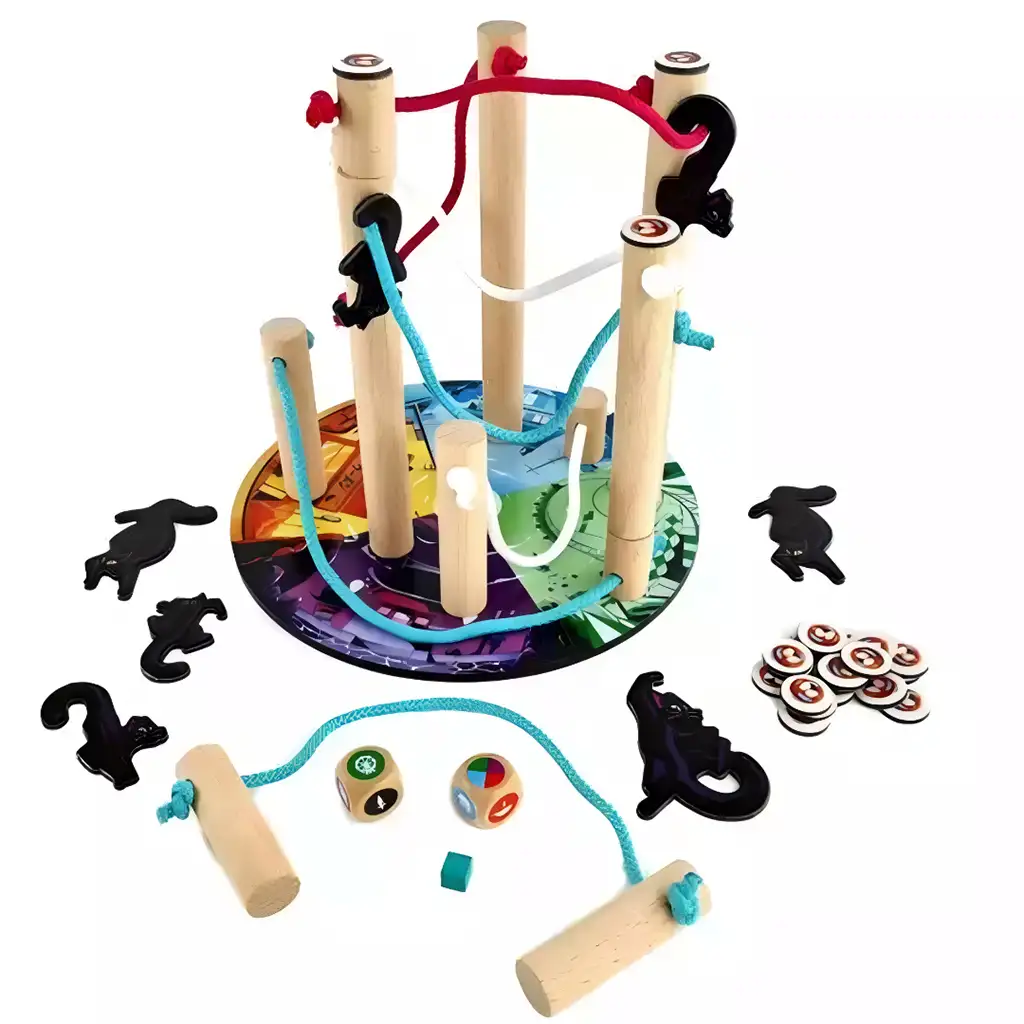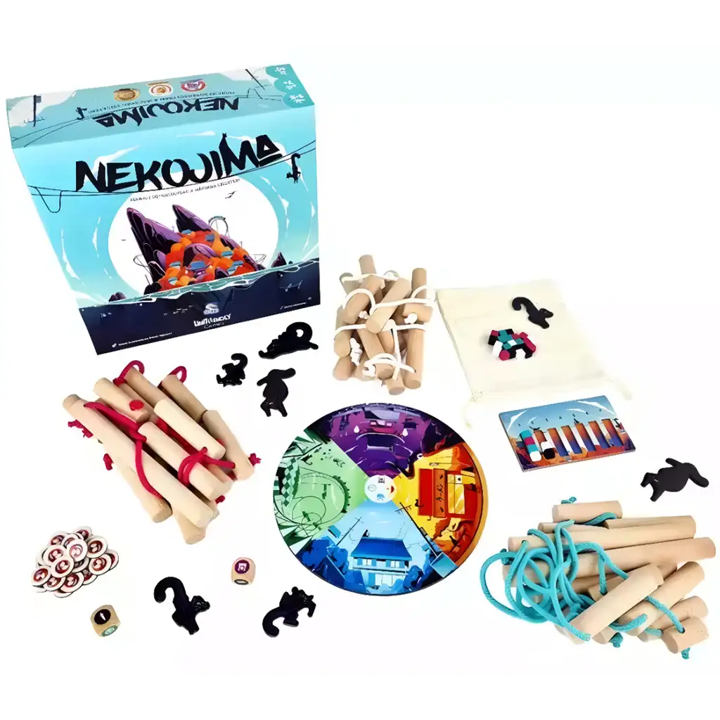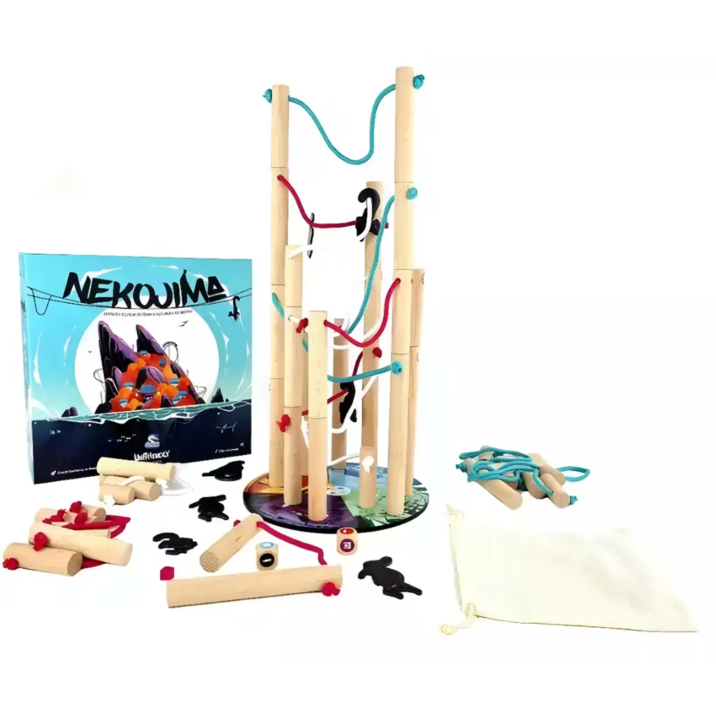 Družabna igra Nekojima je posebna in vznemirljiva spretnostna igra, ki zagotovo pritegne pozornost celotne družine. Osnovna ideja igre je preprosta, a polna izzivov: uravnotežite figurice v obliki mačk na leseni otok, medtem ko se izogibate katastrofi! Posebnost igre je, da vaš otok ni stabilen, ampak stoji na leseni konstrukciji, ki jo držijo vrvi, zato ima vsak gib in dodajanje novega elementa vpliv na ravnotežje.