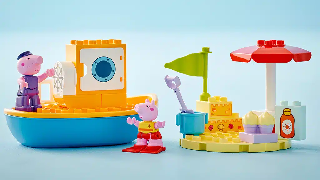 Peppa in dedek Prašič se odpravita na pustolovščino s svojo ladjo. Domišljija malčkov poleti, medtem ko preživljajo vesel dan na obali. Gradijo peščeni grad z vedrom in lopatko, iščejo školjke in pomagajo Peppi obuti plavuti, ko pride čas za malo kopanja. Tudi najmlajši lahko uživajo v igri, medtem ko odkrivajo lepote življenja ob morju in se naučijo, kako varno igrati v bližini vode. Ta pustolovščina ni le zabavna, ampak tudi poučna, saj se otroci spoznajo s čudesi narave in vodnim živalskim svetom.