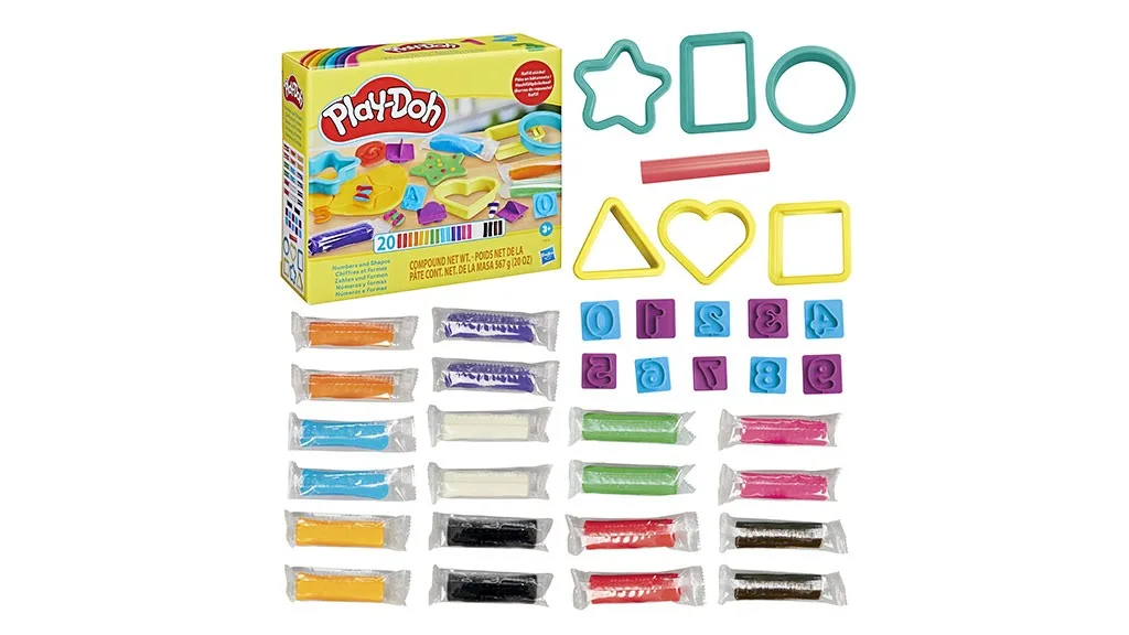 Play-Doh je že dolgo osnovni element dejavnosti, ki se izvajajo na snežne dni, zdaj pa lahko otroci dobijo osvežujoč val oblikovalnih igrač s klasično igro!Otroci se lahko naučijo številke in oblike s to klasično igralno garnituro Play-Doh, ki vključuje 17 orodij, vključno z oblikovalniki in številskimi žigi, ter 10 barv za ustvarjalno ustvarjanje, vključno z rdečo, oranžno, rumeno, zeleno, modro, vijolično, roza, belo, črno in rjavo.