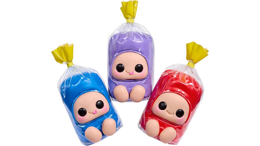 Ta serija sladkih presenečenj vsebuje plišaste figure, ki so oblikovane po navdihu najljubših otroških prigrizkov in slaščic, med drugim znamk Hershey’s, Reese’s, Jolly Rancher, Hostess, ICEE in Blow Pop. Od vsake znamke so na voljo tri različne plišaste igrače, skupaj v 18 različnih stilih, poleg tega pa lahko najdete tudi redke in ultra redke različice posameznih likov. Ti plišasti junaki niso le prikupni in mehki na otip, temveč so tudi popolno darilo za otroke in zbiratelje. Zaradi raznolikih dizajnov lahko vsakdo najde svojega najljubšega, ne glede na to, ali gre za figuro, ki jo je navdihnila čokolada, bonboni ali pecivo.