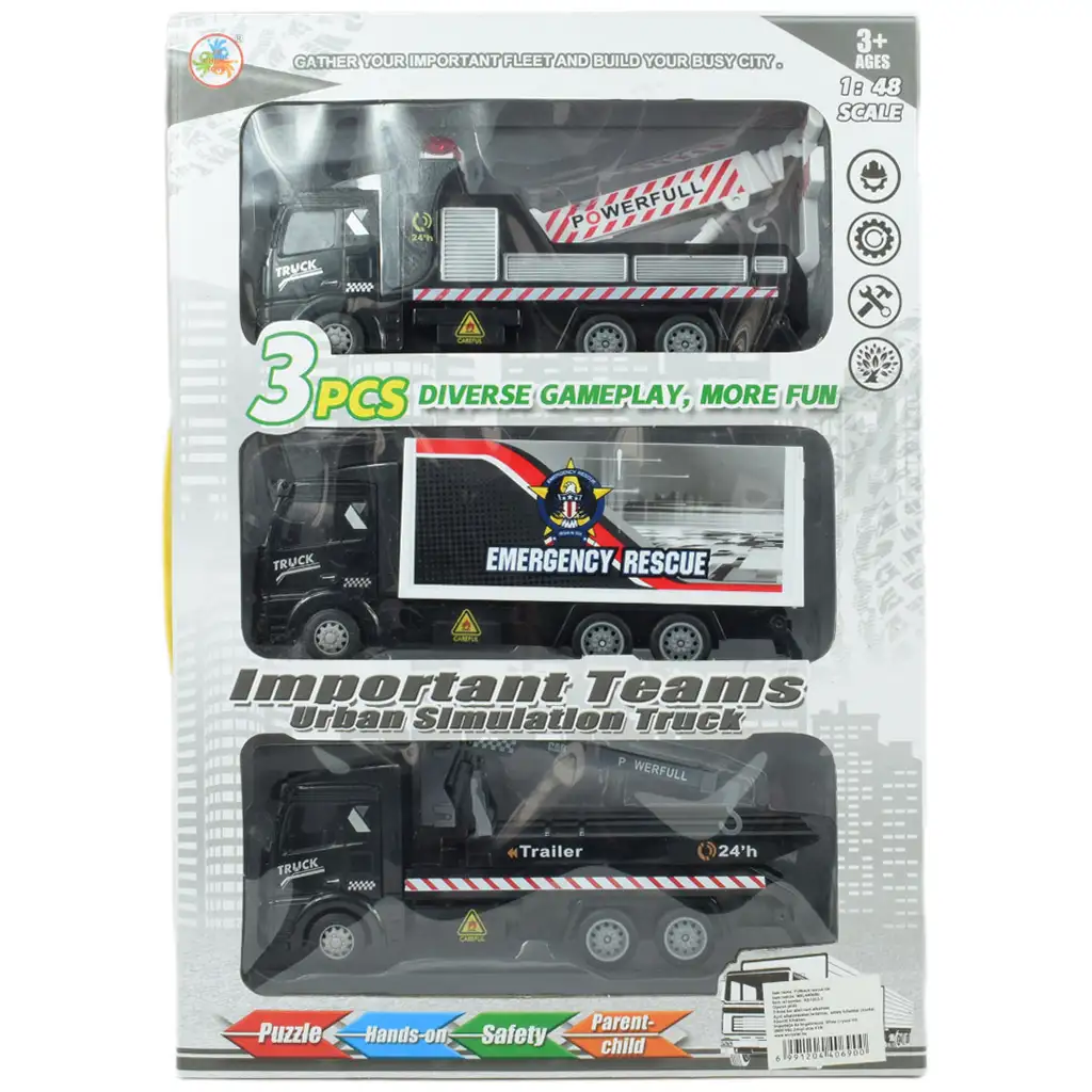 Nujna rešitev: Komplet treh tovornjakov za zaščito pred nesrečami na kolesihNujna rešitev: Komplet treh tovornjakov za zaščito pred nesrečami na kolesih