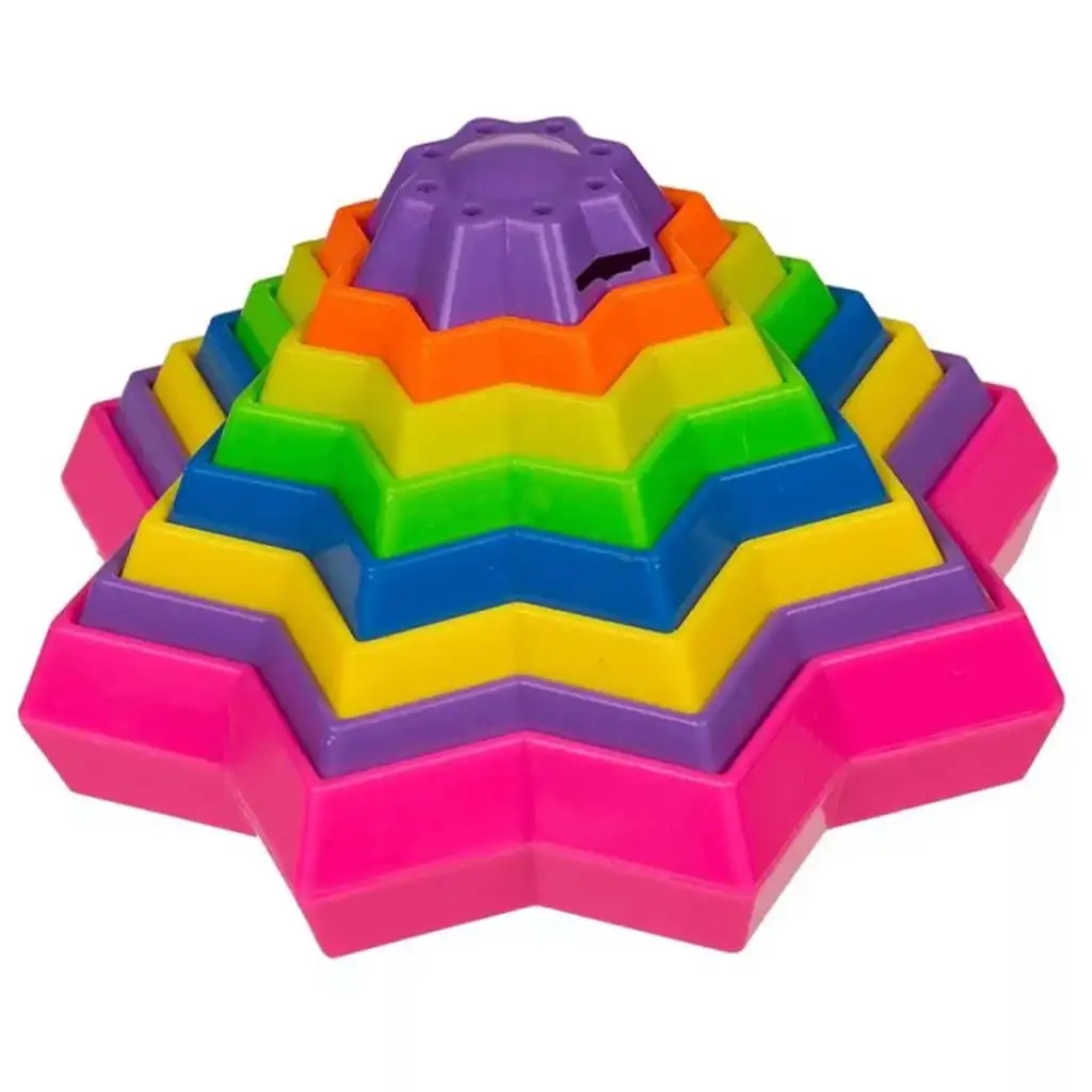 Komplet vsebuje več barvnih, šestkotnih in zvezdastih elementov, ki se lahko med seboj povezujejo, vrtijo in ustvarjajo različne oblike. Bistvo igre je, da otroci sestavijo vrtečo, vizualno privlačno tornado iluzijo z različnimi velikostmi in oblikami kosov. Ta dinamični vizualni učinek ni le zabaven, ampak tudi vznemirljiv izziv za otroke, ki lahko preizkušajo igro v različnih variacijah.