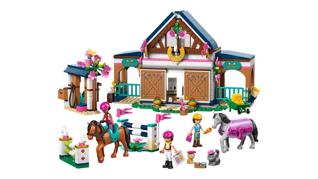 Starši lahko otroke seznanijo z večjimi kompleti gradbenih igrač, na primer s kompletom LEGO Friends Konjski hlev in jahalna akademija s 735 kosi. Otroci lahko zgradijo hlev za Thunderja in Coco, ki vključuje pralno postajo, skakalne ovire, hlevsko orodje, kužka, mucko ter spalne prostore nad hlevi. Ta komplet ne razvija le ustvarjalnosti in ročnih spretnosti, temveč spodbuja tudi igro vlog, medtem ko se otroci potopijo v svet konj in živali.