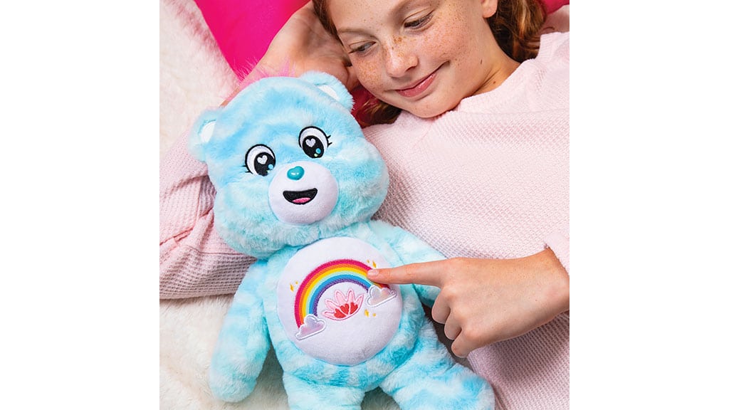 To je 14-palčni plišasti medvedek, ki združuje senzorično igro s klasičnim dizajnom Medvedkov Care Bears. Značka na trebuščku plišaste igrače, blazinice na tačkah in ušesa vsebujejo različne, prijetne teksture. Te teksture ne le stimulirajo čut za dotik, ampak pomagajo tudi otrokom spoznavati različne materiale in površine. Igrača je idealna izbira za tiste, ki imajo radi veččutne izkušnje, in je še posebej koristna za razvoj malčkov, saj podpira razvoj fine motorike in zaznavanja.