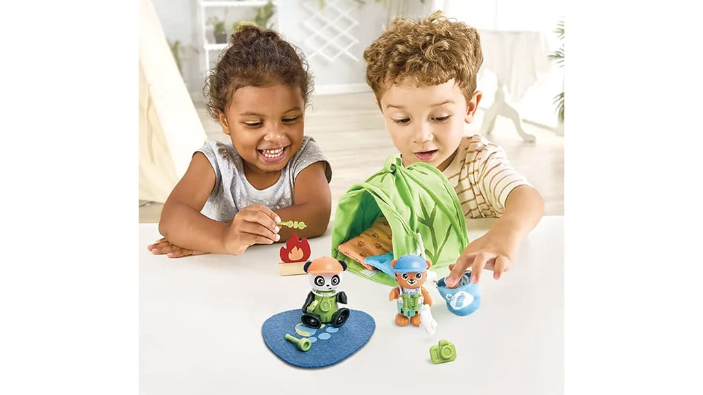 Ta les in okolju prijazen plastičen igralni komplet vsebuje vse, kar potrebujete za raziskovanje na prostem, kot so šotor, spalne vreče, kuhinjska oprema in drugi dodatki. Otroci lahko uporabijo celo grablje in klešče za urejanje gozda, kar jih spodbuja k vseživljenjskemu varovanju okolja. Ta komplet ni le zabaven, ampak tudi poučen, saj se otroci med igro učijo ljubezni in varovanja narave. Med igro se razvija njihova ustvarjalnost, sposobnost reševanja problemov in naučijo se, kako skrbeti za svoje okolje. Ta igralni komplet je idealna izbira za vsako družino, ki ji je pomembna trajnost in spoštovanje narave.