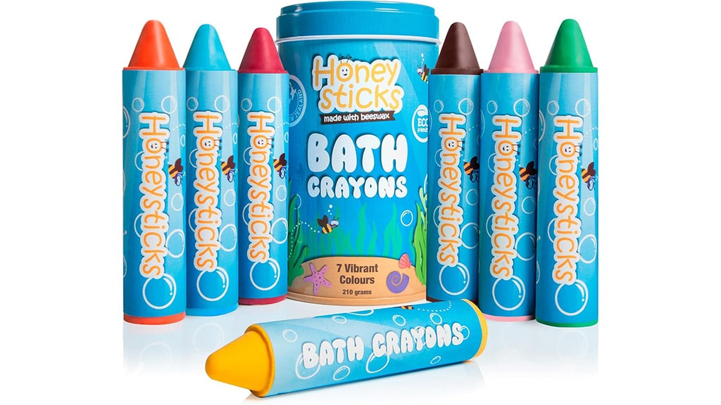 Trajnostne kopalne igrače? Lahko računate na nas, saj smo navdušeni! Ta komplet vsebuje sedem kred, amelyek popestrijo čas kopanja, vse so narejene iz netoksičnega, brezvonjega čebeljega voska. Otroci vseh starosti lahko dodajo malo barve v kad, rišejo po stenah in sprostijo svojo ustvarjalnost. Ko je čas kopanja končan, se risbe zlahka obrišejo.