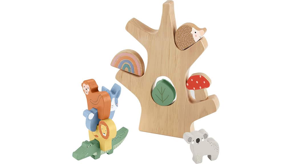 Ta komplet za igro je poln zabave! Predšolski otroci lahko vadijo svoje fine motorične spretnosti tako, da uravnotežijo devet barvnih blokov drug na drugem ali na vejah. Izdelan je iz trajnostnega lesa in netoksičnih barv, zato lahko otroci pomagajo varovati drevesa, medtem ko raziskujejo. Ta komplet ni le zabaven, ampak tudi izobraževalen, saj se otroci med igro učijo o pomenu varovanja okolja. Različne oblike in velikosti barvnih blokov predstavljajo dodatne izzive, ki razvijajo ustvarjalnost in sposobnost reševanja problemov.