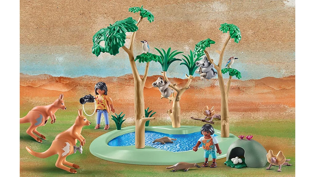 Ta komplet za igro vabi otroke na pustolovščino, polno živali, v avstralsko divjino. Komplet vsebuje dve mini figuri, kenguruje, koale, ovratniške kuščarje in druge prikupne avstralske divje živali, ki se zbirajo okoli napajališča. Izdelan je iz več kot 80 % reciklirane plastike, zato lahko otroci pomagajo rešiti Zemljo, medtem ko odkrivajo njene čudeže!