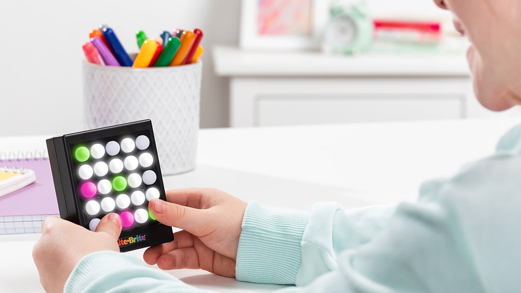 Ta kompaktna Lite-Brite Touch Mini iz ponudbe Basic Fun! združuje zabavo fidget igrač s klasično igro. Vsebuje 25 svetlečih gumbov, ki jih otroci lahko s preprostim dotikom spremenijo v sedem različnih barv. Tako kot polna velikost Lite-Brite Touch ima tudi ta različica igralni način s tremi igrami: Lite-Tac-Toe, Lite Remember in Lite Dot-to-Dot.Lite-Brite Touch Mini je lahko idealna izbira za otroke, ki imajo radi ustvarjalne in interaktivne igre. Menjanje barv in preizkušanje različnih iger ni le zabavno, ampak razvija tudi otrokovo ustvarjalnost in spomin. Kompaktna velikost omogoča, da ga povsod s seboj vzamejo, zato je odlična zabava tudi med potovanjem.