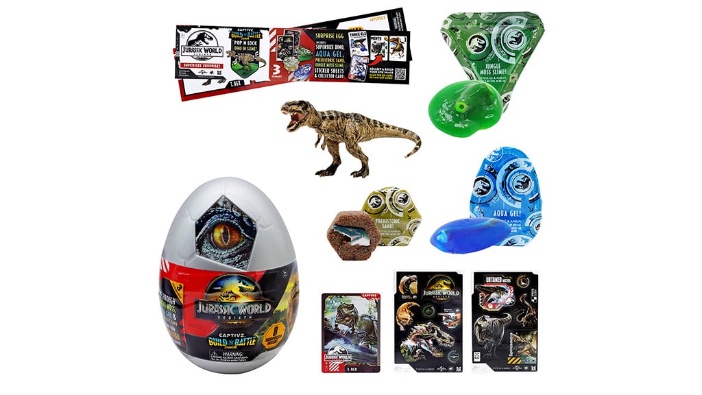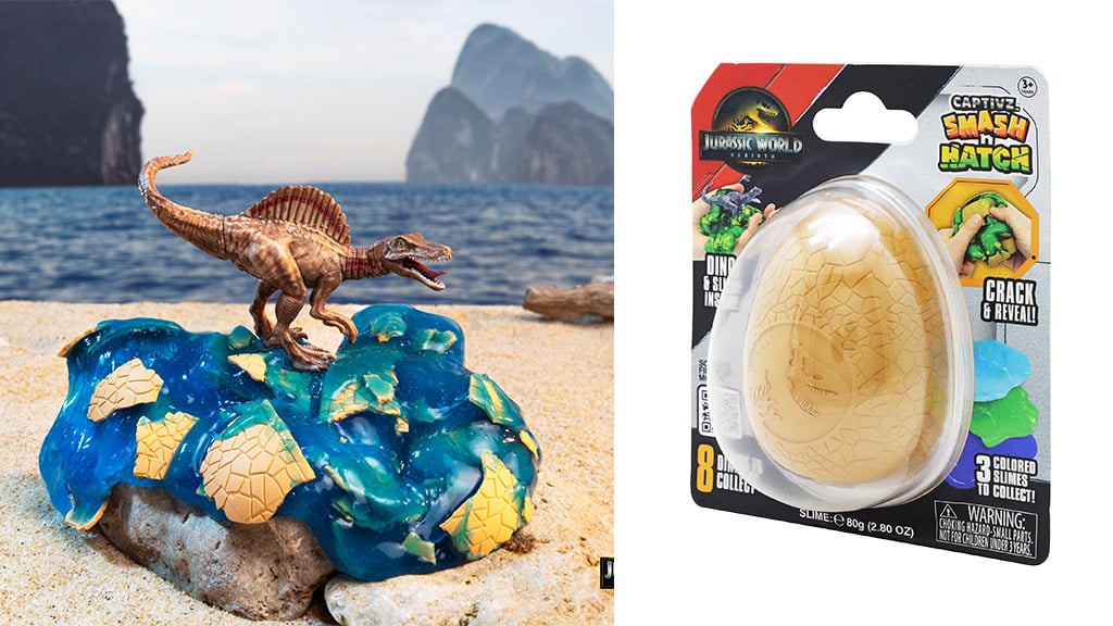 Kaj je bilo prej, dinozaver ali jajce? Otroci lahko zdaj končno maguk is felfedezhetik a választ a feltörhető skrivnostnimi jajci! Ob odpiranju Slime Jajca jih pričaka eden izmed 13 dinozavrov, zbirateljska kartica in porcija raztegljive sluzi. Presenečenje Jajce skriva še večjo pošast in vsebuje tri lepljive, raztegljive snovi. Otroci lahko razbijejo tudi Smash and Hatch Jajce – ko se pojavi dinozaver, lahko preostanek jajca potisnejo v sluz, kar daje res poseben, zadovoljiv občutek. Na zbiranje čaka več deset dinozavrov, tako da se lahko otroci ure in ure zabavajo v razburljivem iskanju zakladov!