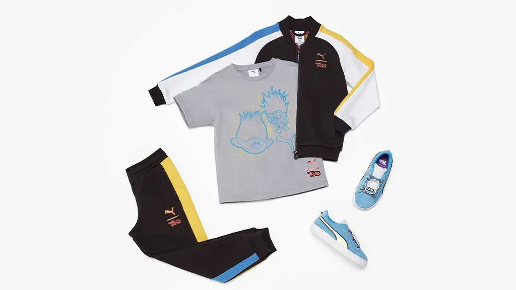 Majhni oboževalci Trolov zdaj lahko plešejo na svojo najljubšo pesem ob glasbi iz filma udobno in v slogu!Film DreamWorks Animation Troli in blagovna znamka športne opreme PUMA sta sodelovala pri ustvarjanju nove kolekcije za otroke, ki jim omogoča aktivno gibanje.