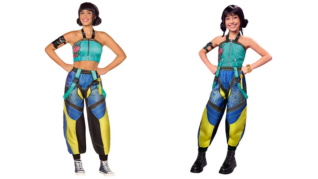 Kolekcija vsebuje tri osupljive komplete, ki izvirajo neposredno iz uvodne pesmi How It’s Done, tako v otroških kot odraslih velikostih. Mira nosi svoj značilni, okrašeni top in rumeno krilo, ki ju dopolnjujejo roza ščitniki za škornje. Zoeyjin kostum sestavljata modra majica z naramnicami in vzorčaste hlače, ki njen videz naredita resnično edinstvenim. Rumijina oprava ni le bleščeča, temveč tudi zlata! Ta komplet vključuje pevkino ikonično rumeno jakno, kratke hlače in majico brez rokavov ter ščitnike za čevlje, ki posnemajo njen slog z vezanimi škornji. Poleg tega lahko dobiš celo njen znameniti vijolični kito v obliki lasulje, da bo tvoj Halloween še bolj brezskrben in nepozaben!