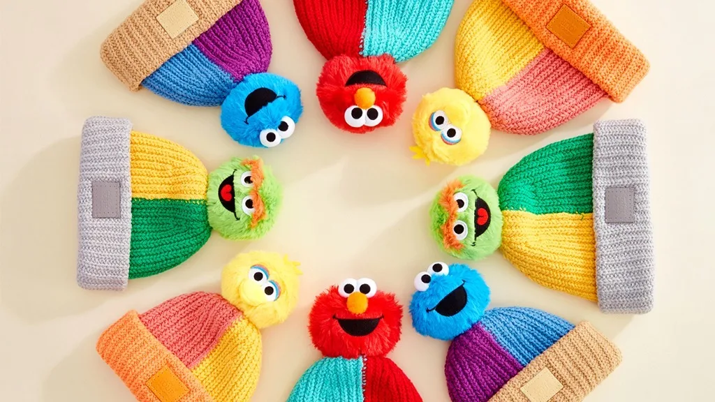 Ta kolekcija vključuje štiri barvne bloke, ki predstavljajo like Velikega Ptiča, Oskarja, Elma in Požeruha piškotov v značilnem pletenem slogu Love Your Melon, z značilno usnjeno etiketo, s katere visijo snemljivi pompomi z liki. Del prihodkov je namenjen dobrodelnim organizacijam, ki se borijo proti otroškemu raku. (Bonus: Na voljo so tudi v velikostih za odrasle.)