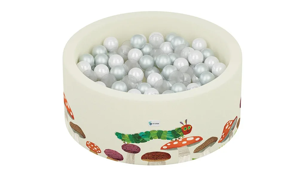 Bazen z žogami Very Hungry Caterpillar je odlično darilo za malčka, ki si nenehno želi bazenov z žogami (ali za starše, ki se ponoči prebujajo ob misli na vse bakterije v bazenih z žogami). Zdaj lahko imajo svojega doma!Otroci, ki si želijo razburljive nove oblike igre, hrepenijo po bazenu z žogicami na temo