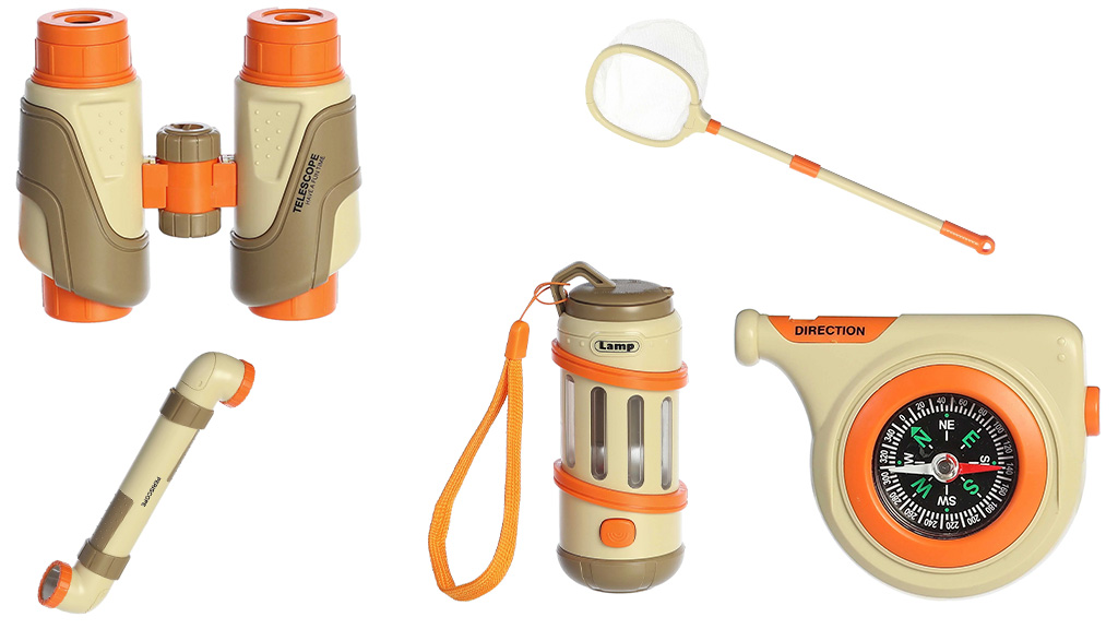 Številni igralni elementi omogočajo enostavno odkrivanje narave: v ponudbi lahko najdete periskop, daljnogled in žepno povečevalno steklo. Ko smo v divjini, je komunikacija prav tako ključnega pomena. Na srečo kolekcija Camp Arcadia vključuje komplet walkie talkie in kombinirano piščalko ter kompas.S periskopom lahko enostavno opazujemo okolico, tudi izza grmovja. S teleskopom lahko približamo oddaljene predmete, medtem ko lahko z žepno lupo preučimo najmanjše podrobnosti. Walkie-talkieji omogočajo, da ostanemo v stiku s svojimi tovariši, tudi če smo daleč drug od drugega. Kombinirana piščalka in kompas pa ne pomaga le pri orientaciji, ampak je lahko koristna tudi v nujnih primerih.