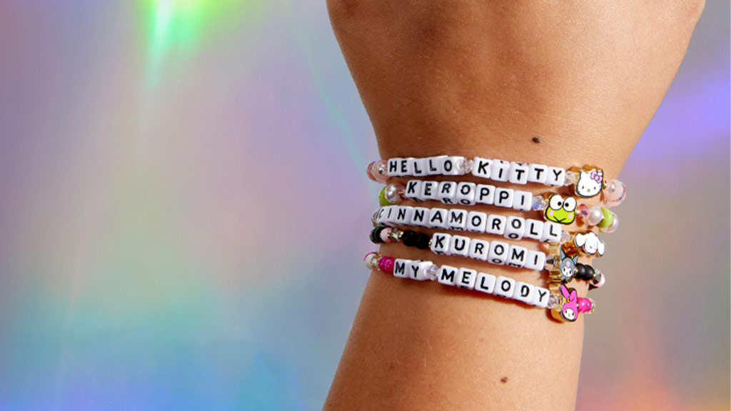 Otroci so že leta najboljši prijatelji s Hello Kitty, in ob 50. obletnici lika lahko otroci pokažejo, kako močno je to prijateljstvo. Little Words Project prinaša prijaznost v svet z zapestnicami prijateljstva, ki temeljijo na Hello Kitty in njenih prijateljih.V novi kolekciji je pet različnih dizajnov, vsak temelji na barvni shemi enega lika. Kolekcija vključuje zapestnico z rožnatimi in prozornimi biseri za Hello Kitty; modro-belo zapestnico za Cinnamoroll; zeleno, rožnato in belo zapestnico za Keroppi; črno, sivo in rožnato zapestnico za Kuromi; ter živahno rožnato in prozorno zapestnico za My Melody.
