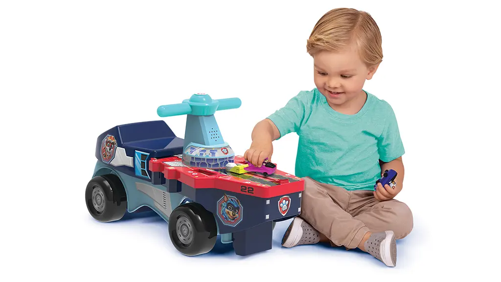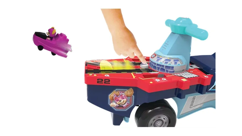 To vozilo ima dva reaktivna motorja, vzletno-pristajalno stezo, zaganjalnik in gumbe na volanu, ki predvajajo zvoke in tematsko pesem Paw Patrol, medtem ko se otroci vozijo.