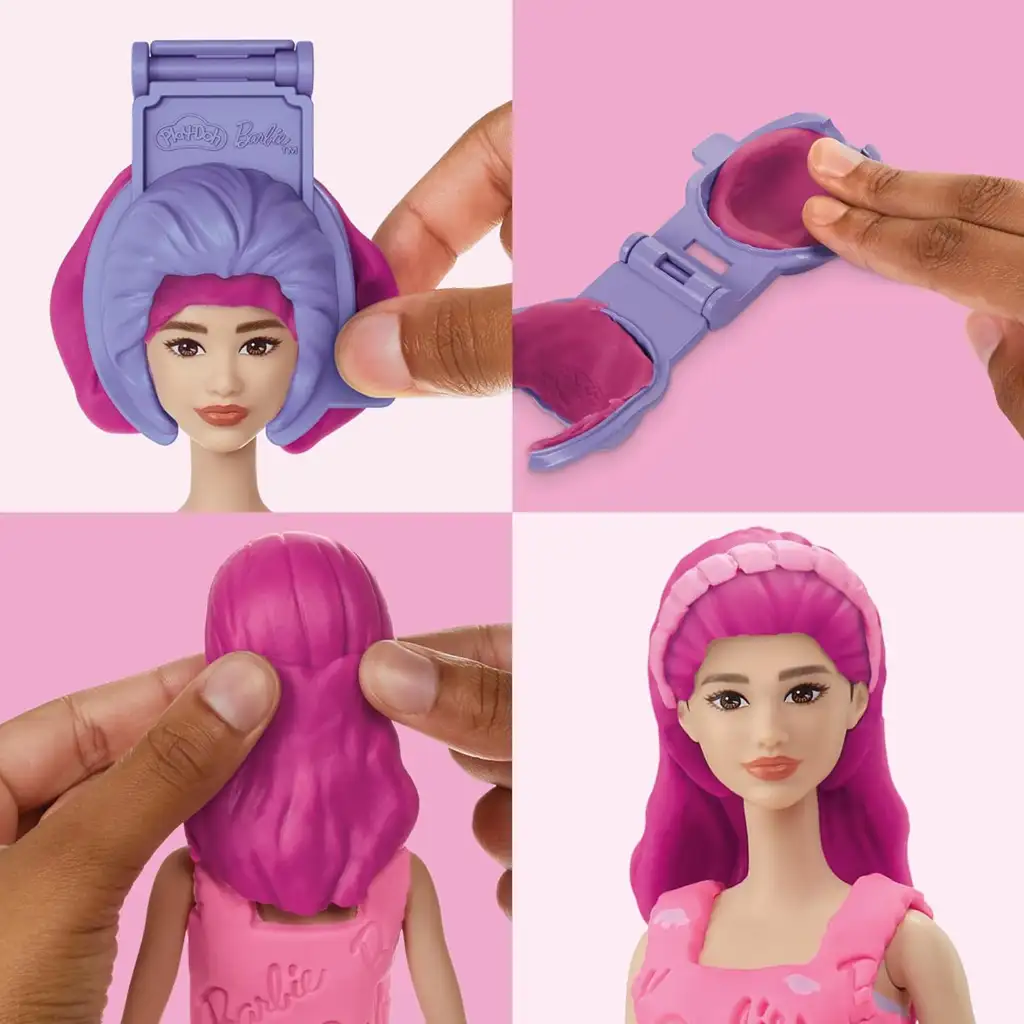 Med igro lahko otroci Barbie preprosto postavijo na stojalo, nato pa s priloženim Play-Doh modelirnim listom s srčki in rezalniki oblikujejo svoja srčkana oblačila. Iz roza in vijoličastega plastelina lahko izdelajo pentlje, okraske ali celo celotne modne sete, seveda pa ne smejo manjkati niti detajli z Barbie logotipom.