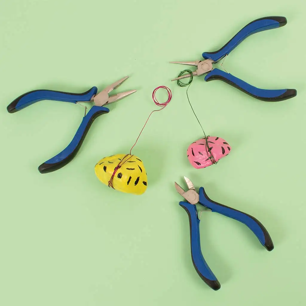 Ergonomski, gumirani ročaj zagotavlja udoben oprijem tudi pri dolgotrajni uporabi, tako da lahko otroci ure uživajo v ustvarjanju brez utrujenosti rok. Velikost in oblika orodij sta prilagojeni otroškim rokam, zato so varna in enostavna za uporabo. Ustvarjalni komplet klešč je na podlagi slik popolna izbira za načrtovanje in izdelavo nakita, okraskov iz žice ali drugih unikatnih rokodelskih izdelkov.