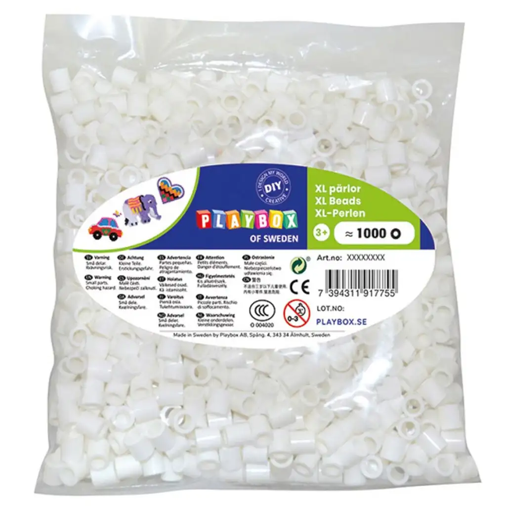 Bele XL MAXI perlice PlayBox so izdelane iz varne, visokokakovostne plastike in so priporočljive za otroke od 3. leta starosti. Če vaš otrok rad ustvarja ali iščete enobarvni, preprost komplet perlic, je ta paket s 1000 belimi kosi popolna izbira!
