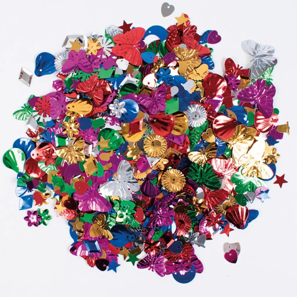 Paket vsebuje različne vzorce, kot so metulji, zvezde, rože, školjke in srca, tako da boste za vsak projekt našli popoln dodatek. Bleščice imajo premer 6 mm, kar je idealno za natančne in podrobne okrasitve.