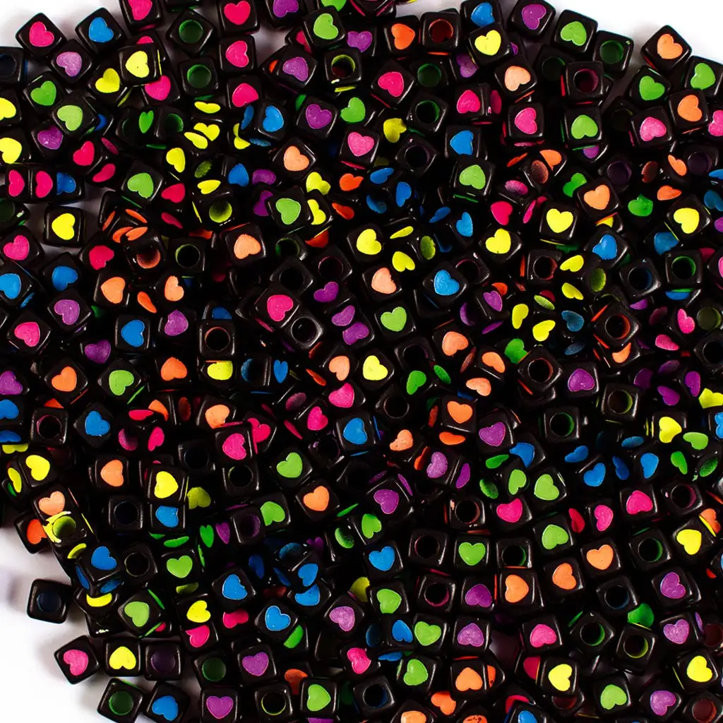 Ta črna plastična perla s srčki je odlična izbira za obrtne projekte, izdelavo zapestnic in ogrlic. Srčki svetijo v neonskih barvah, tako da lahko ustvarite opazne in veselo okrašene dodatke.