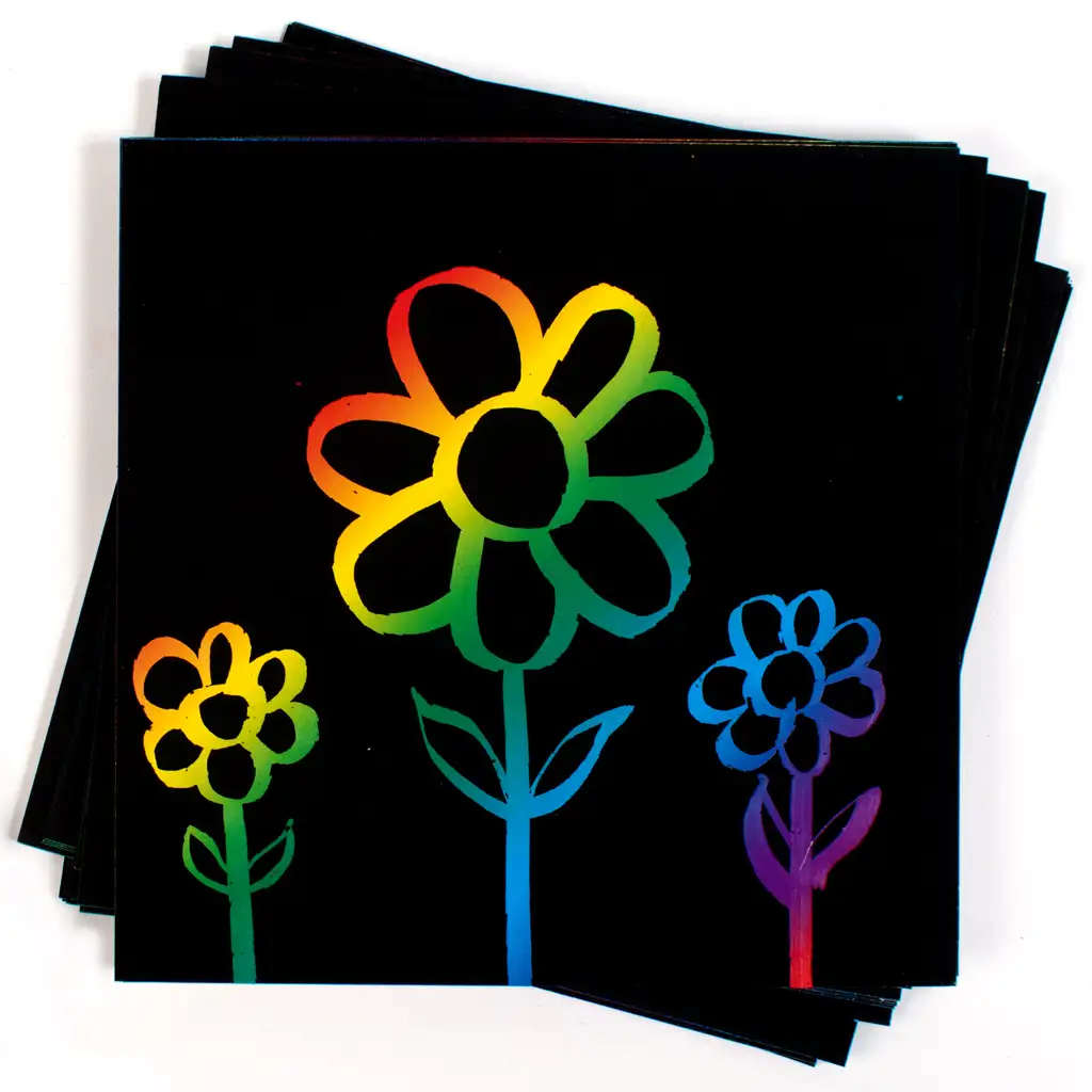 Črna površina z voskom za praskanje ponuja vznemirljivo in kreativno dejavnost, pri kateri praskate črno površino, da razkrijete barvite motive, ki se skrivajo za njo. Paket vključuje plastična ali lesena orodja za praskanje, s katerimi lahko enostavno odstranite črni voščeni sloj in odkrijete mavrične vzorce in slike.