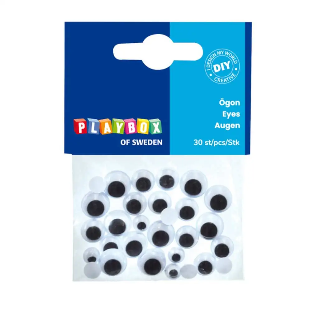 PlayBox: Črno-beli premikajoči se oči z trepalnicami v več velikostih, 30 kosov.PlayBox: Črno-beli premikajoči se oči z trepalnicami v več velikostih, 30 kosov.