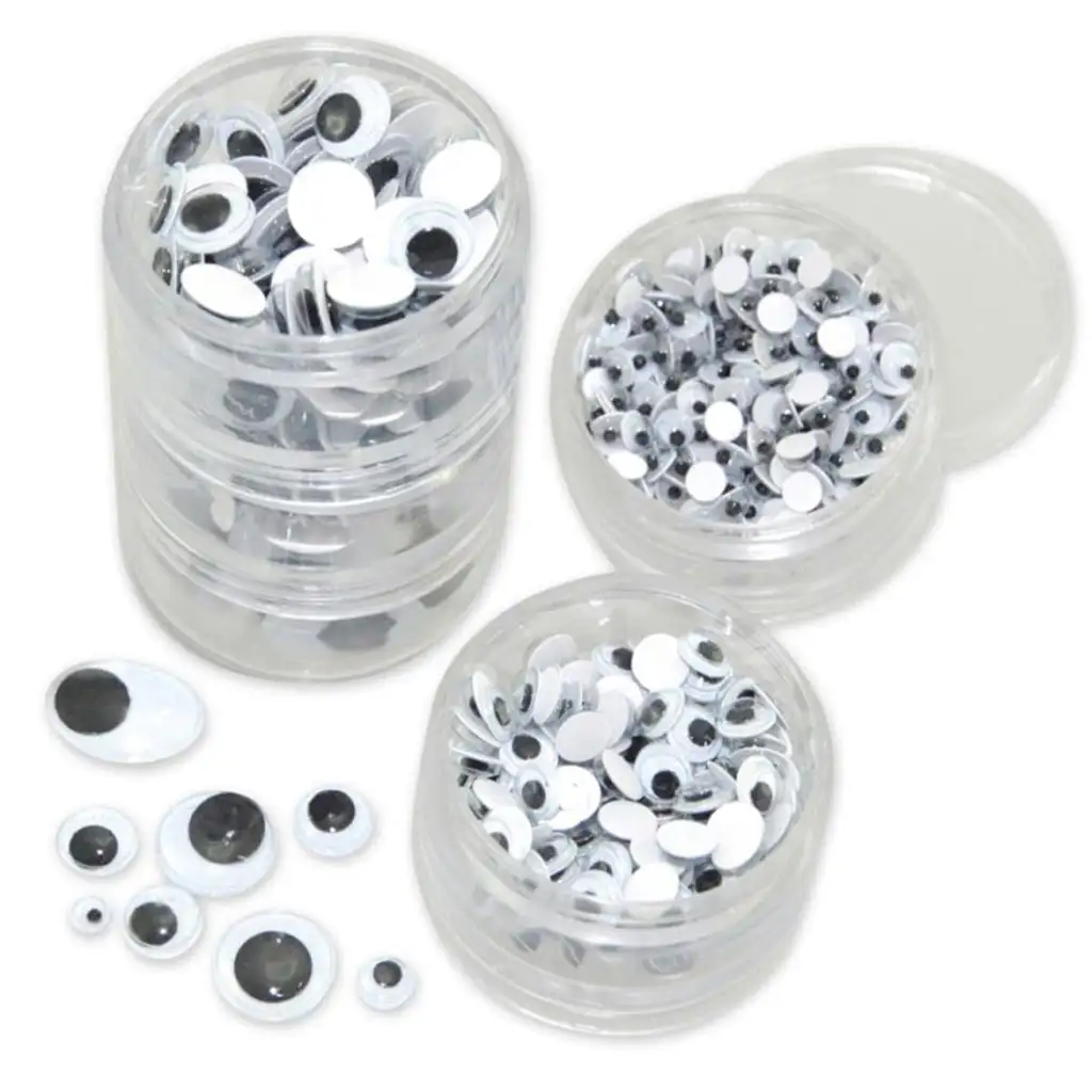 Oživite plišaste igrače, ročne izdelke ali šolske projekte s temi premičnimi ovalnimi očmi! Komplet 560 kosov ponuja oči v petih različnih velikostih, omogoča, da vsaki figuri ali predmetu dodate oči ustrezne velikosti in oblike. Najmanjše so velike 5 mm, največje pa 20 x 15 mm, tako so kreativne možnosti neskončne. Oči v črni in beli barvi ustvarjajo življenjski učinek, medtem ko je sestava iz PVC materiala brez ftalatov varna za uporabo. Prihajajo v organizirani in praktični škatli za shranjevanje, tako da lahko enostavno najdete pravo velikost in količino.