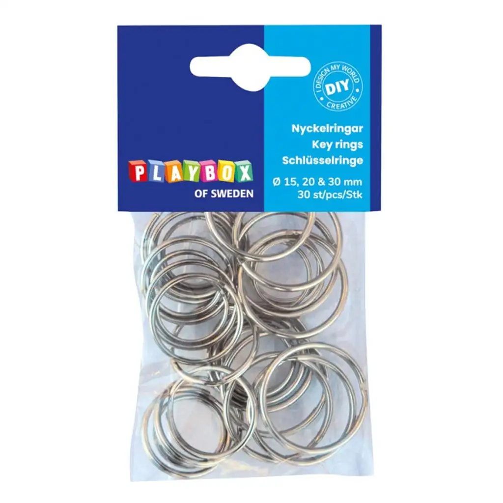 PlayBox: Kovinski obeski za ključe v treh velikostih, 30 kosov