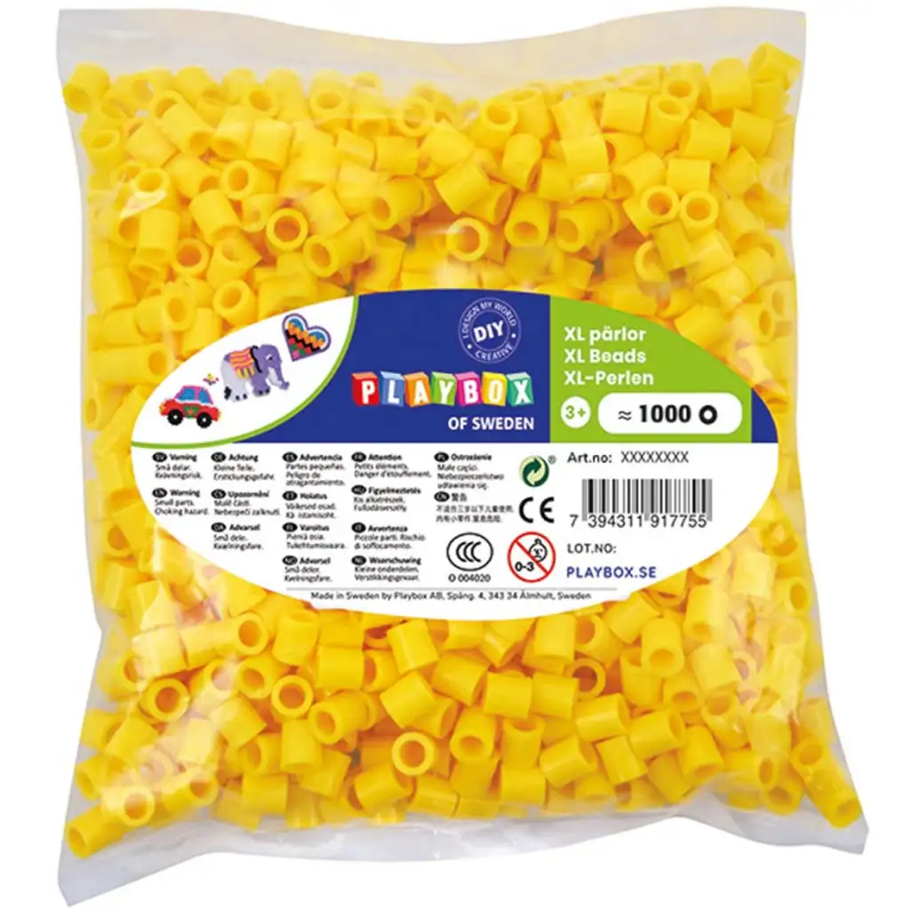 PlayBox XL rumeni likalni kroglice so popolna izbira, če vaš otrok za svoje ustvarjanje potrebuje živahno, sončno barvo. Kroglice s premerom 9 mm so posebej primerne za majhne otroke, ki se šele spoznavajo z ročnimi spretnostmi, a tudi večji otroci jih bodo z veseljem uporabljali za izdelavo podrobnih vzorcev.