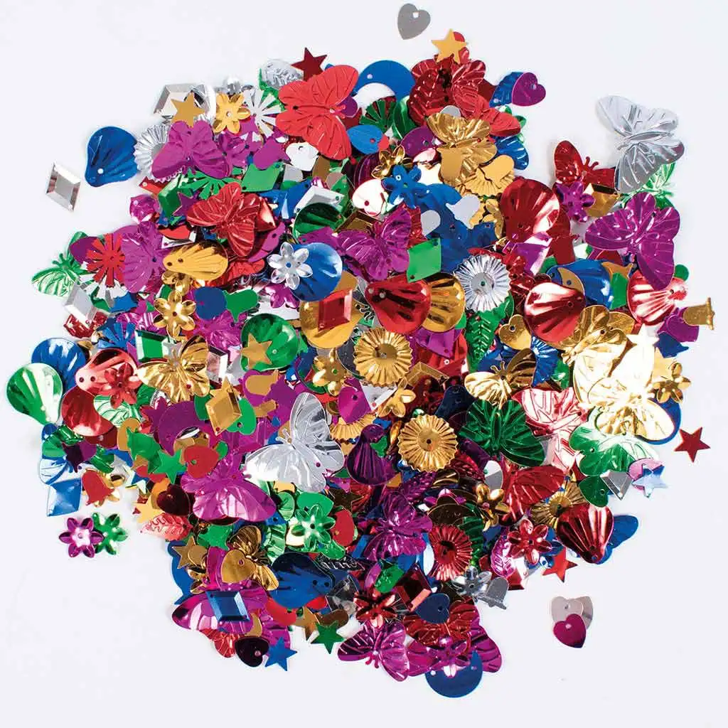 PlayBox: Pisane bleščice v različnih barvah, velikostih in oblikah, pakiranje 250g.PlayBox: Pisane bleščice v različnih barvah, velikostih in oblikah, pakiranje 250g.