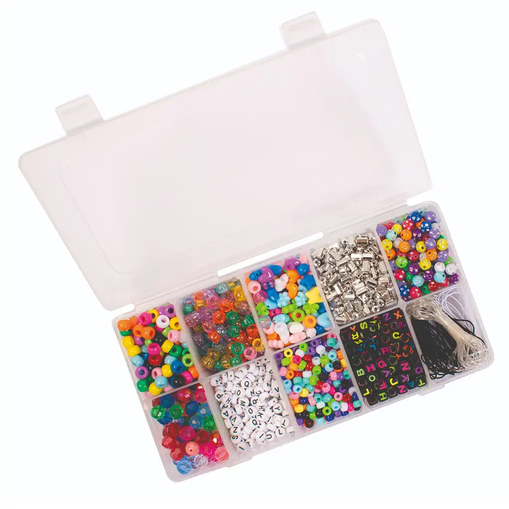 Komplet plastičnih perlic PlayBox je prava zakladnica kreativnosti, ki pride k tebi v praktični škatli za shranjevanje. Ta komplet vsebuje ne samo 1900 različnih perlic, ampak ima tudi 9 različnih stilov perlic, kar ponuja raznolike kreativne možnosti.