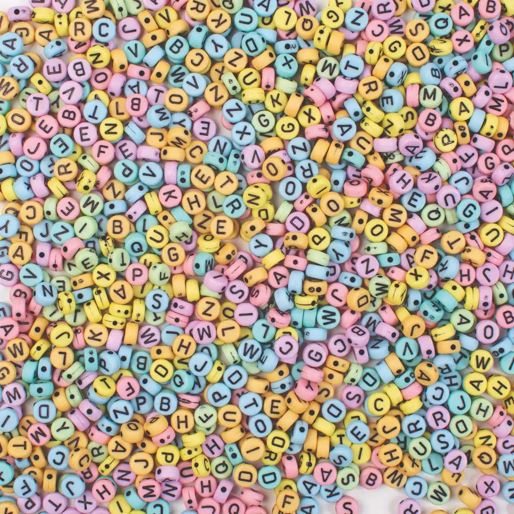 Pastelne barve z črnimi črkami na okroglih biserih so odličen material za izdelavo personaliziranih zapestnic in ogrlic. Ti biseri omogočajo, da se kreativno izrazite in ustvarite unikatne nakite, ki so ne samo lepi, ampak lahko tudi pomenljivi.