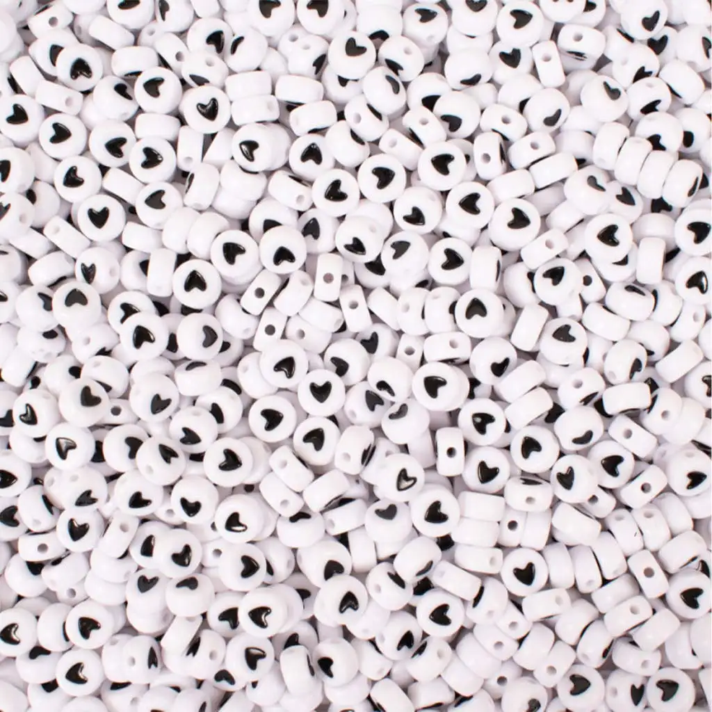Na kreativnost! Set 300 kosov srčkastih perlic je popolna izbira za vse, ki želijo ustvarjati. Perlice so bele z osnovno barvo in črnim srčkastim vzorcem, kar daje izdelanim nakitom ali dekoracijam čist, a igriv videz. Velikost 7 mm je idealna za izdelavo dodatkov – naj gre za zapestnice, ogrlice, obeske za ključe ali druge kreativne projekte. Zaradi natančne izdelave jih je enostavno nanizati na vrvico ali elastiko, tako da lahko tudi mlajši otroci uživajo v veselju nizanja perlic.