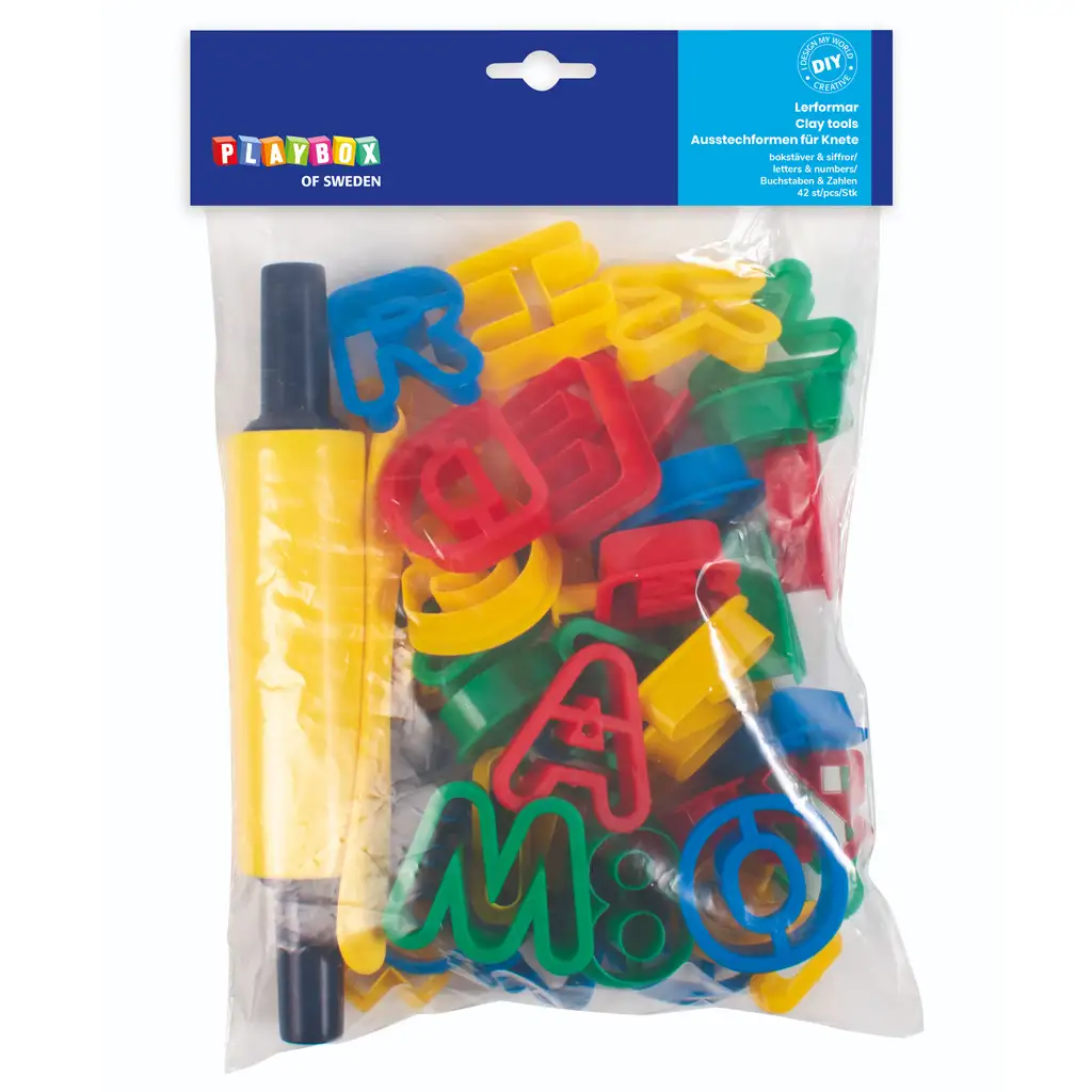 - 26 kosov črkovnih oblik: Te oblike omogočajo ustvarjanje edinstvenih sporočil, imen ali besed iz gline.