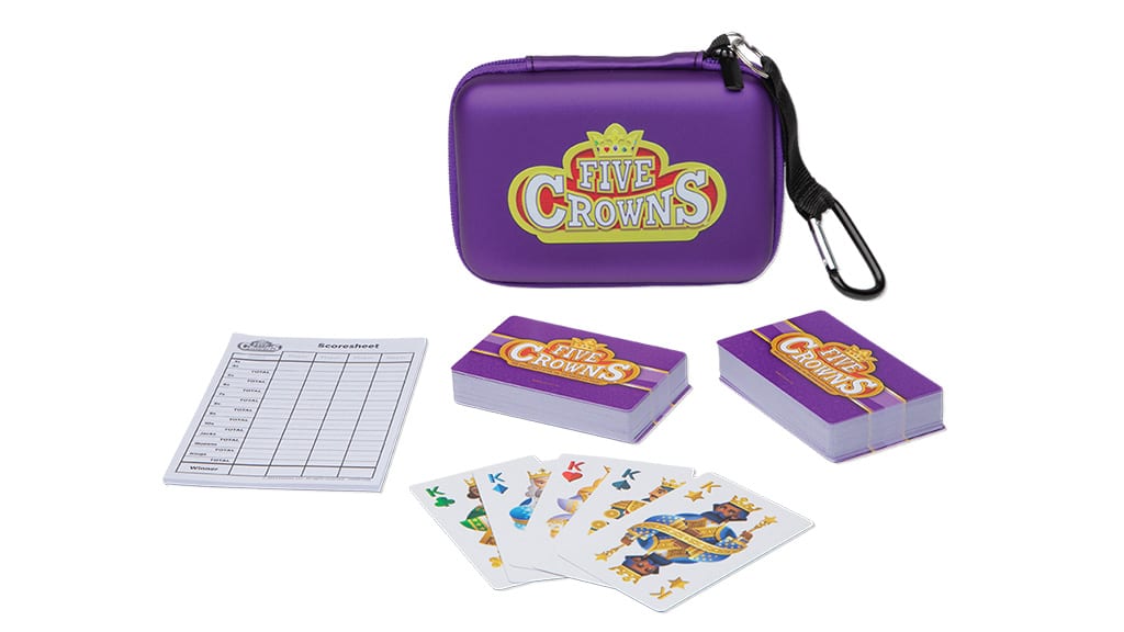 Ta komplet vsebuje osnovne pripomočke za več krogov kartne igre Pet kron, v kateri je cilj igralcev doseči čim nižji rezultat, medtem ko zvišujejo rezultat svojih nasprotnikov z oblikovanjem različnih knjig in serij. V vsakem krogu ena karta deluje kot joker, kar močno vpliva na to, katere karte je mogoče odigrati, zato igra vedno ostaja nepredvidljiva in napeta. Komplet vsebuje 116 igralnih kart, pravila igre, več točkovnih listov ter mehko potovalno torbico, ki ima tudi karabin, tako da jo je mogoče enostavno pritrditi na nahrbtnik ali ročno prtljago. Ta igra je popolna izbira za družinska ali prijateljska srečanja, potovanja in zagotavlja zabavno izkušnjo za vse starosti.