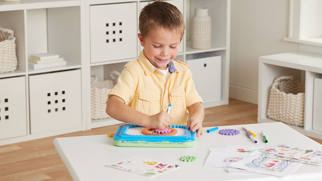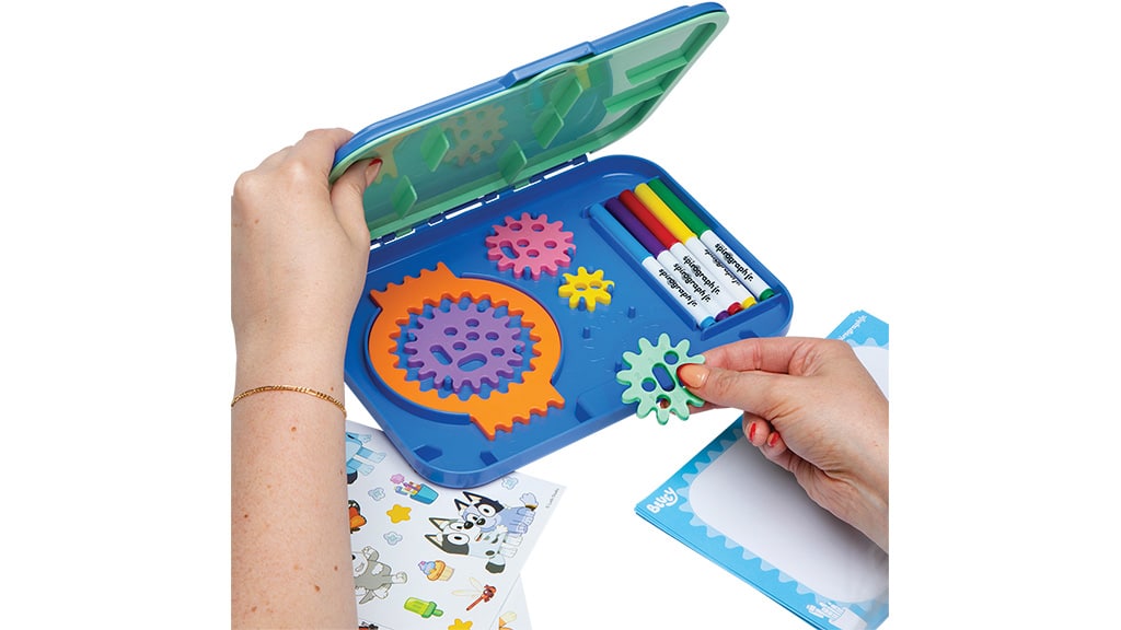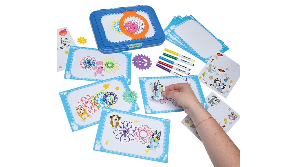 Starši lahko svoje otroke uvedejo v svet retro zabave s kompletom, ki vsebuje like iz njihove najljubše predšolske serije. Ta različica Spirograph Jr., ki jo je izdelal PlayMonster, vsebuje vse, kar je potrebno za ustvarjanje spiralne umetnosti na temo Bluey. Mali umetniki lahko ustvarjajo mojstrovine z oblikovalsko mizo, oblikovalskim papirjem, štirimi zobniki, petimi flomastri in tremi listi nalepk Bluey. Najprej otroci dvignejo okvir in med vogalne oznake postavijo list papirja. Nato, ko zobniški obroč postavijo v okvir, izberejo želeni flomaster in zobnik za ustvarjanje zabavnih vzorcev.