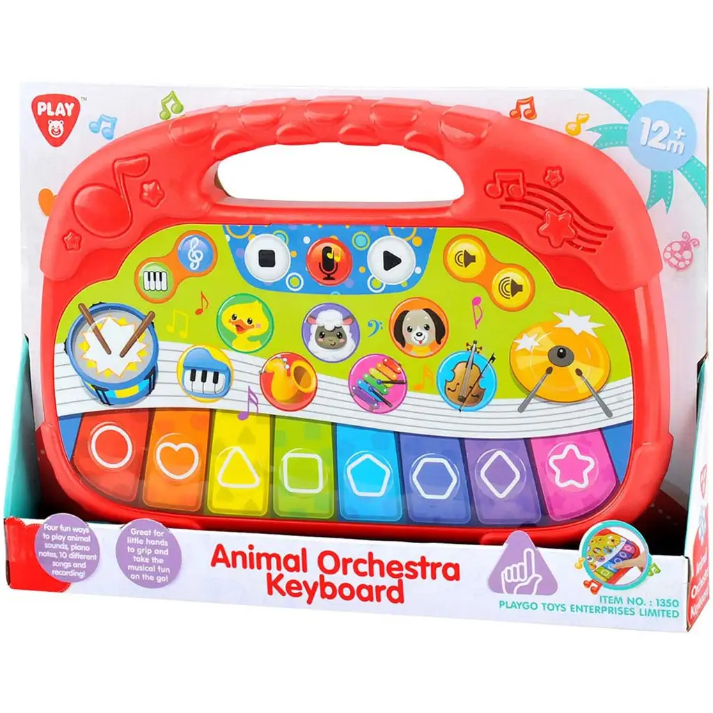Prinesite domov veselje do glasbe že od 12. meseca starosti s Playgo Veselim živalskim orkestrom s klavirjem, ki zagotovo pričara nasmeh na obrazu najmlajših glasbenikov! Ta barvit, interaktivni instrument ni le zabaven, ampak ima tudi izobraževalni učinek – spodbuja razvoj otrokovega slušnega in vizualnega zaznavanja ter prepoznavanja oblik in barv. S pritiskanjem na pisane, instrumentno oblikovane tipke lahko najmlajši poslušajo različne živalske glasove in instrumente, zato gresta učenje in igra z roko v roki.