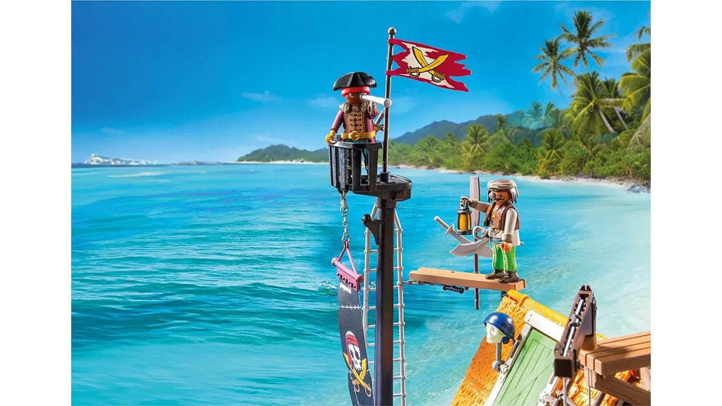 To je piratski komplet, ki vsebuje pristaniško postajo za velike ladje, v kateri se skriva tudi skrivni piratski zapor. Otroci lahko uporabijo loputo za zapiranje ujetnikov, sprožijo lobanjsko topovi, ki izstreljujejo v temi svetleče lobanje, in doživijo še veliko drugih razburljivih dogodivščin. Ta komplet je odlična priložnost za ustvarjalno igro in razvoj domišljije, medtem ko otroci doživljajo svoje lastne piratske zgodbe.