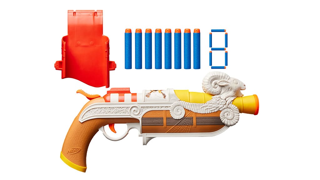 Nova kolekcija prinaša prvi izdelek, ki ga je odobril Luffy , in sicer NERF One Piece Going Merry Blaster. Ta penasti izstreljevalnik je opremljen z osmimi NERF Elite izstrelki in ima priložen tudi pripenjalni tok, tako da ga otroci zlahka vzamejo s seboj na vse svoje piratske dogodivščine. Uporaba izstreljevalnika je izjemno preprosta: samo naložite izstrelek v cev, potegnite ročico nazaj in s pritiskom na sprožilec lahko že izstrelite izstrelek v zrak.