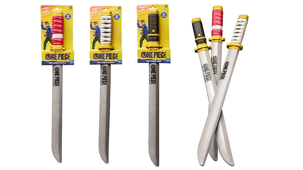Otroci se lahko udeležijo vznemirljivih bitk s tridelnim kompletom penastih katan, ki so jih navdihnili legendarni meči Roronoa Zoro, Sandai Kitetsu, Wado Ichimonji in Yubashiri. Vsak meč je dolg približno 60 cm in ima penasto jedro, rezilo ter ročaj, da je igra varna in brezskrbna. Otroci se lahko pretvarjajo, da so drugi poveljnik Monkey D. Luffy, medtem ko jih starši nadzorujejo, bodisi ob gledanju priljubljene igrane serije ali animeja skupaj. Ta komplet je popolna izbira za vsako družino, ki je oboževalec One Piece in želi doživeti pustolovščine tudi v svojem domu.